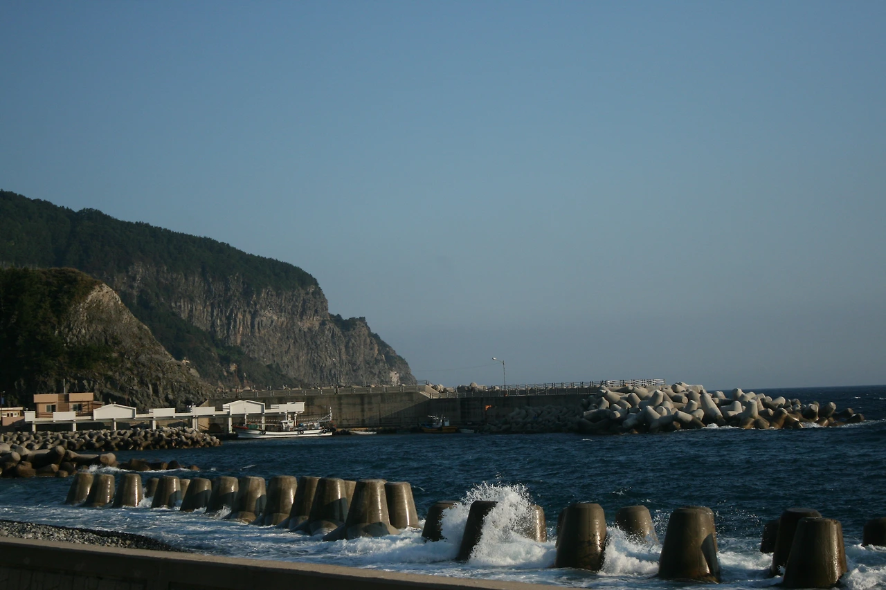 태하항 앞에서 학포 쪽으로 바라보니 깎아지른 절벽이 병풍처럼 둘러선 울릉도 주상절리 풍경이 다가온다.