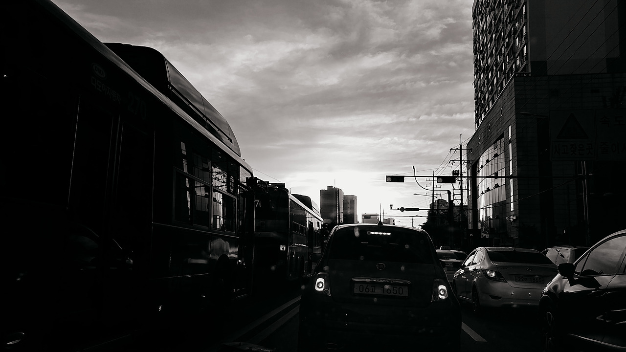 밤이 내리는 거리에 선다