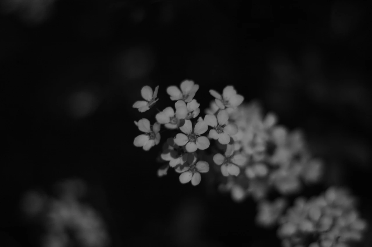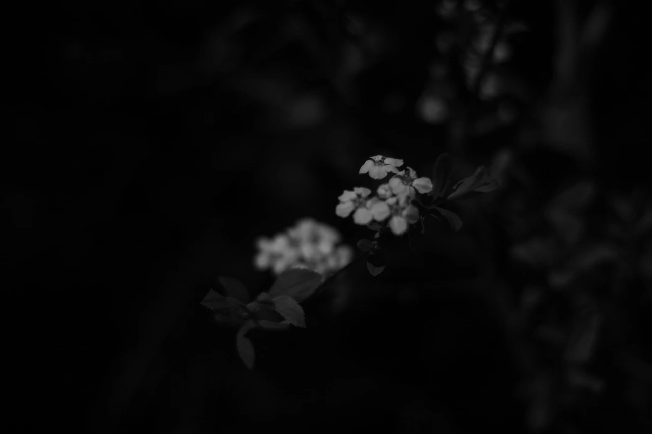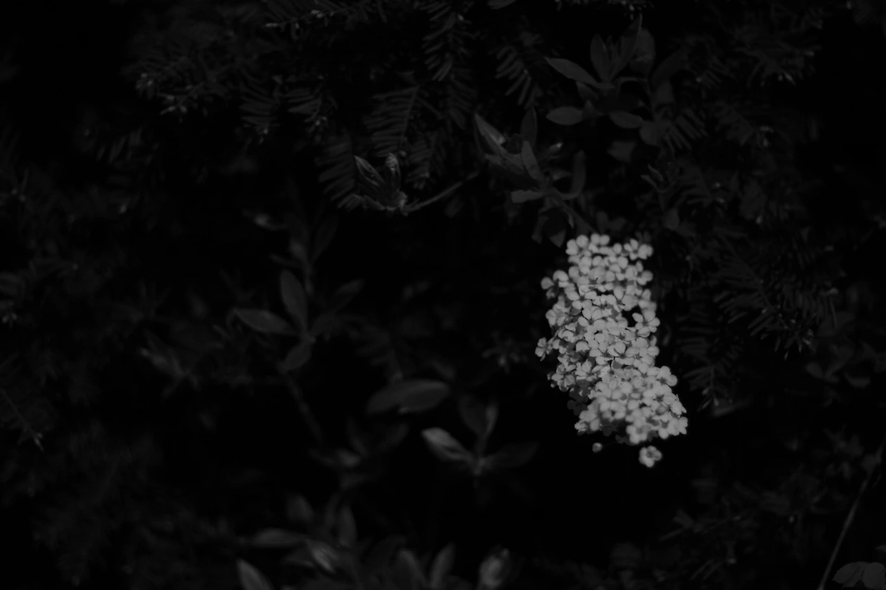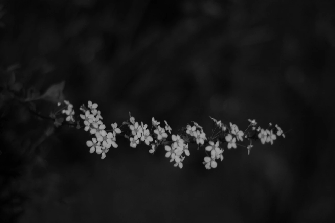 밤 하늘 아래 하얀 꽃