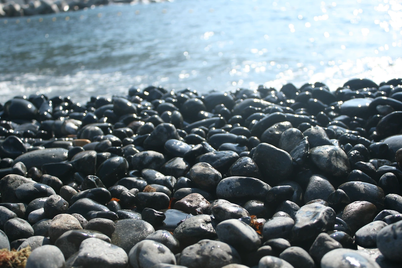 파도가 연주하는 바닷가 몽돌의 '잘그락'거리는 노래에