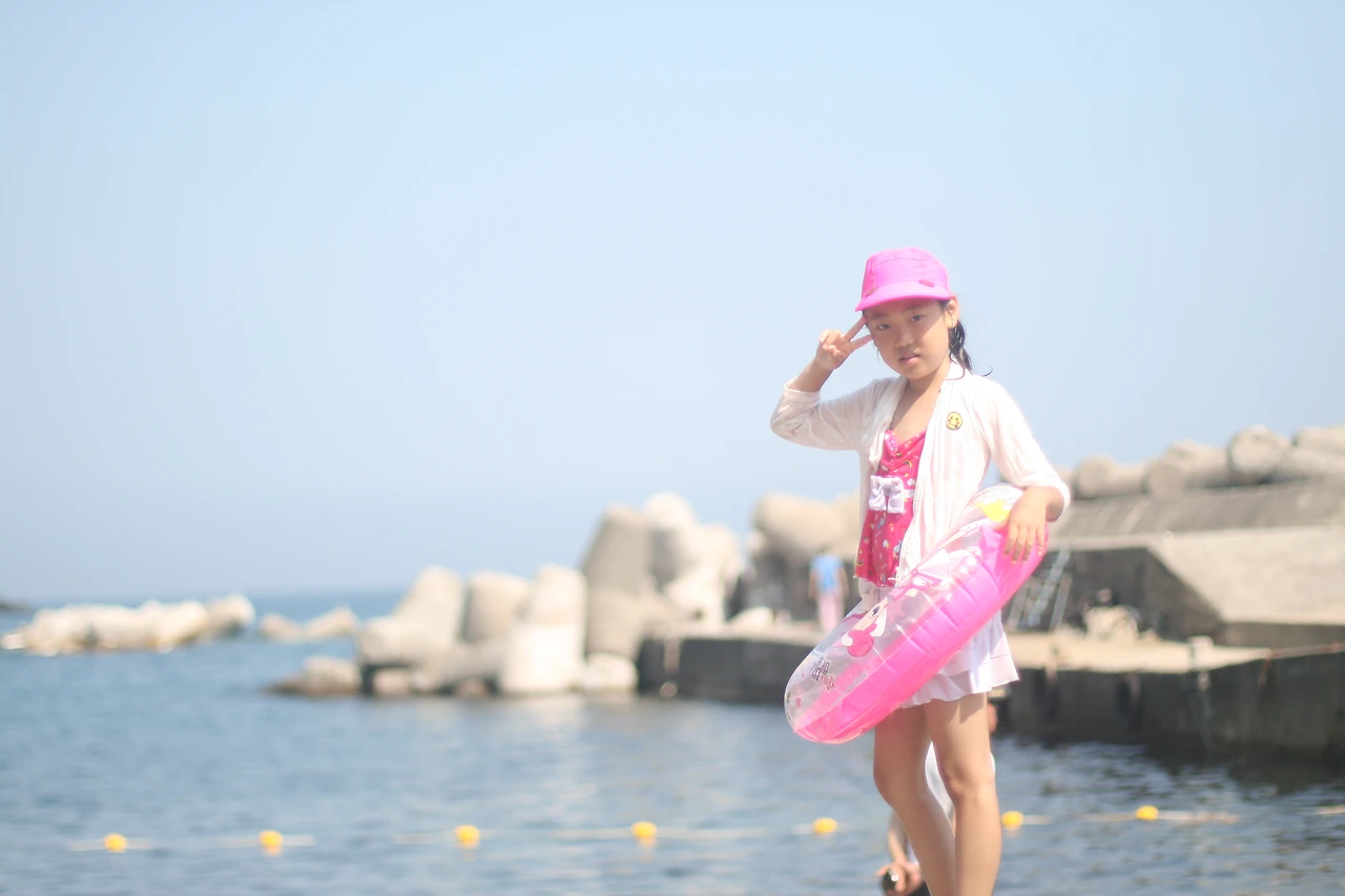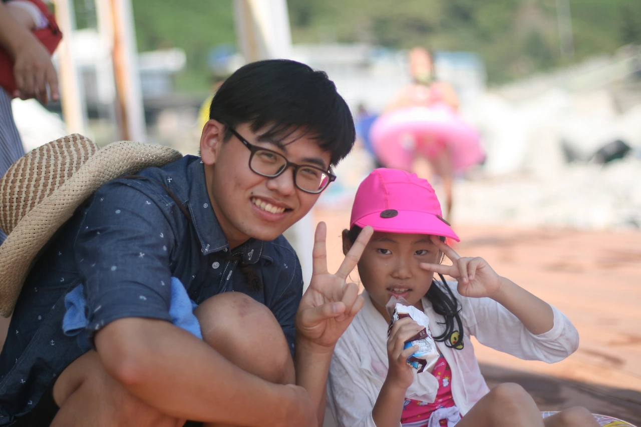 푸른 파도 부서지는 바닷가에 조카들이 놀고 있다.