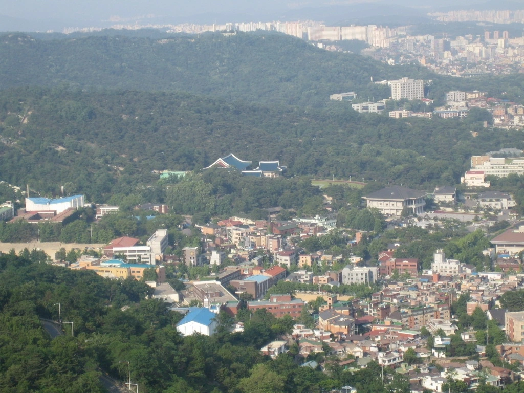 중간 조금 아래쪽이 경복궁, 아래는 서촌 일대, 중간 부분의 큰 건물은 현대그룹 사옥이다. 청와대 앞은 이처럼 고층빌딩이 없고 남산까지 시야가 탁트여있다.
