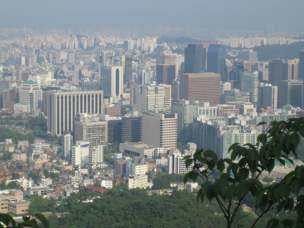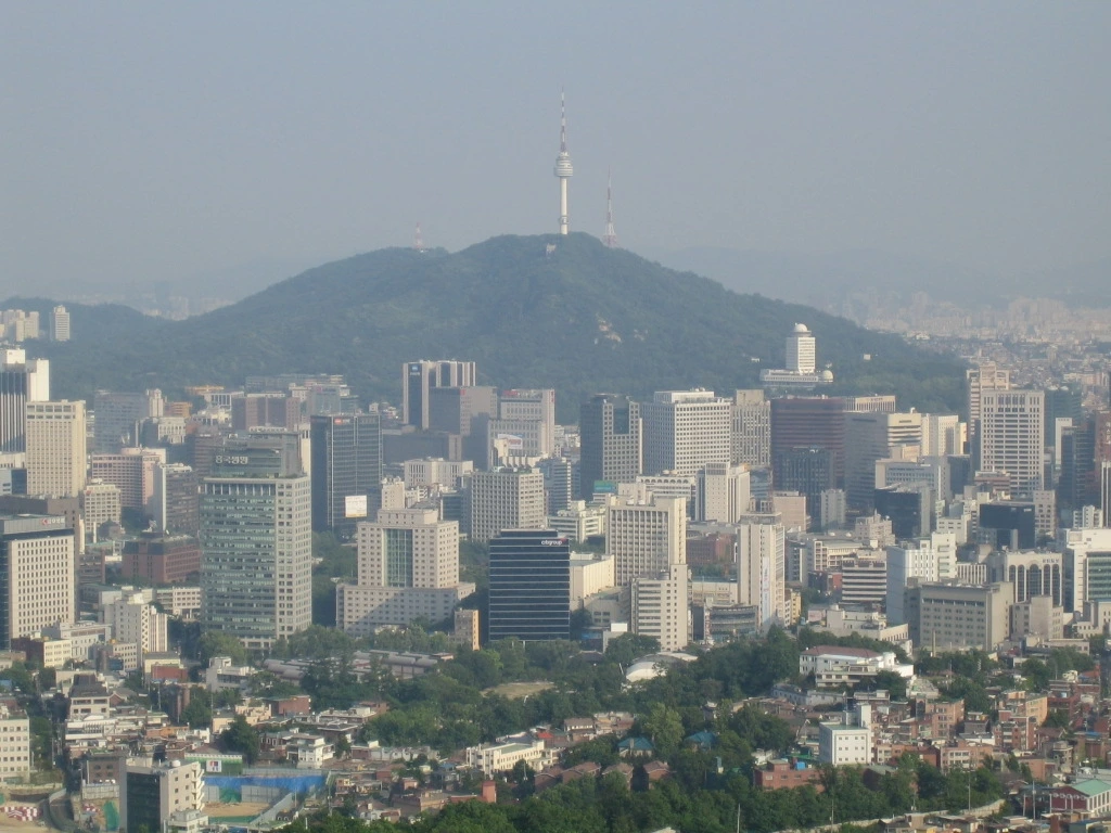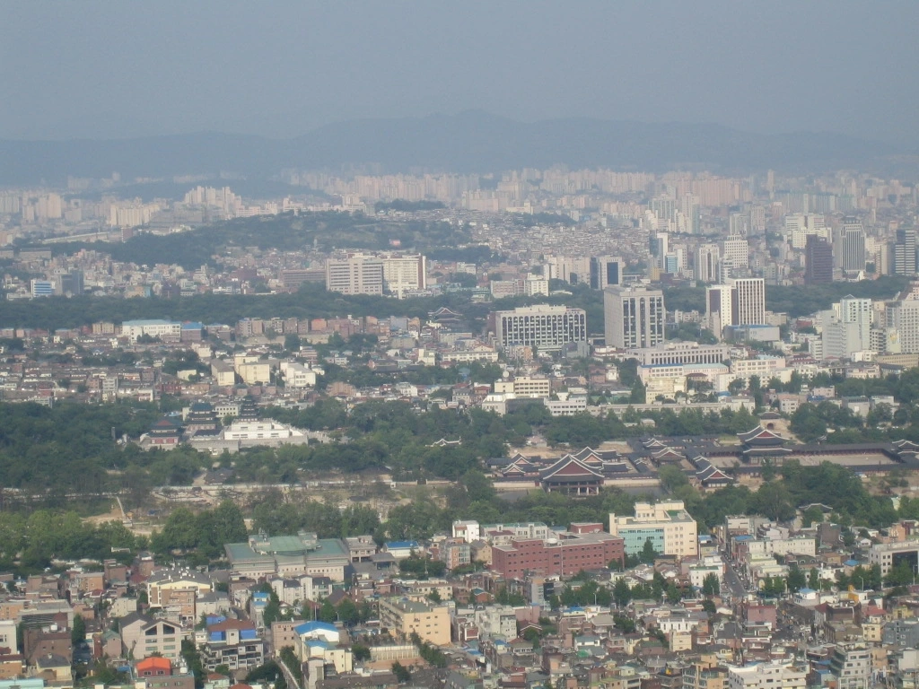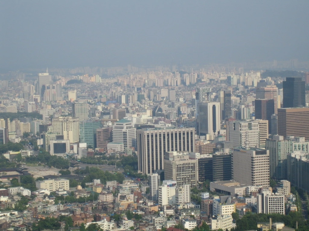 인왕산에서 본 남산 풍경. 도심의 높은 빌딩이 줄지어 서있고 멀리 남산타워가 보인다. 이곳은 대한민국 근현대사의 중심이다.