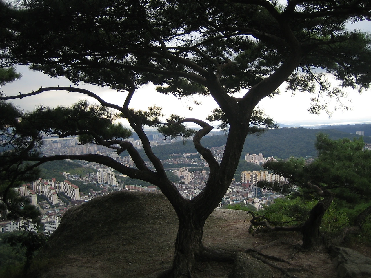 소나무 사이로 보이는 홍제동과 가좌동 풍경. 소나무는 지금도 그곳에 있지만 사람들은 태어나고 자라고 죽어갔다. 나무 입장에서 보면 사람은 짧은 삶을 사는 존재이다.