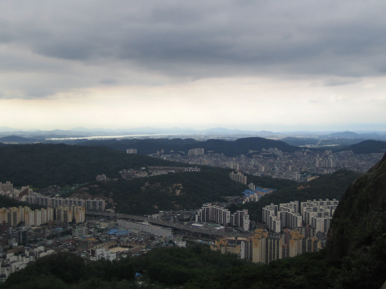 넓은 바위에 앉아서 도심을 바라보면 가슴 벅찬 감동이 밀려온다