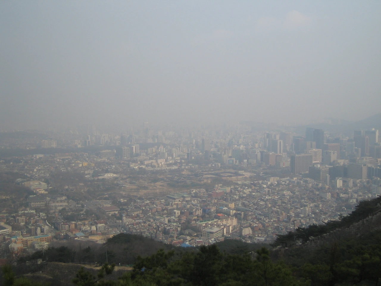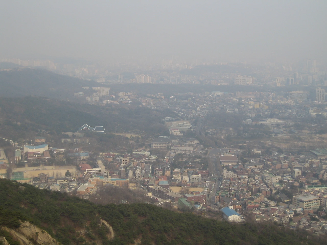서촌과경복궁이 뿌옇게 보인다. 매연과 미세먼지와 황사, 사람들이 만든 문명에 사람들이 고통받고 있다. 세상에 넉넉한 것보다 조금 모자른 것이 낫다는 말을 절실하게 깨닫는다.