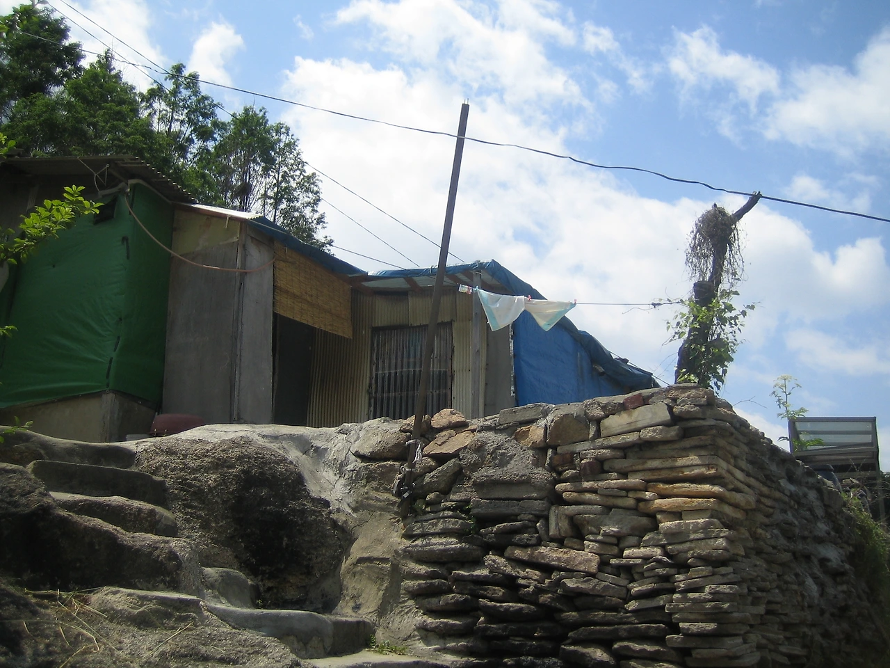함석이나 슬레트 지붕에 나무나 함석이나 합판으로 벽을 세우고