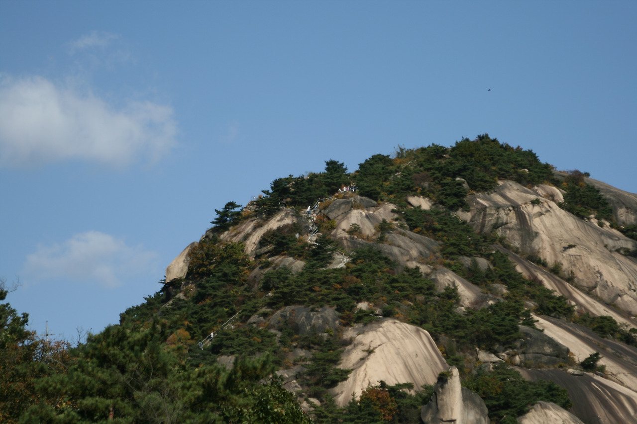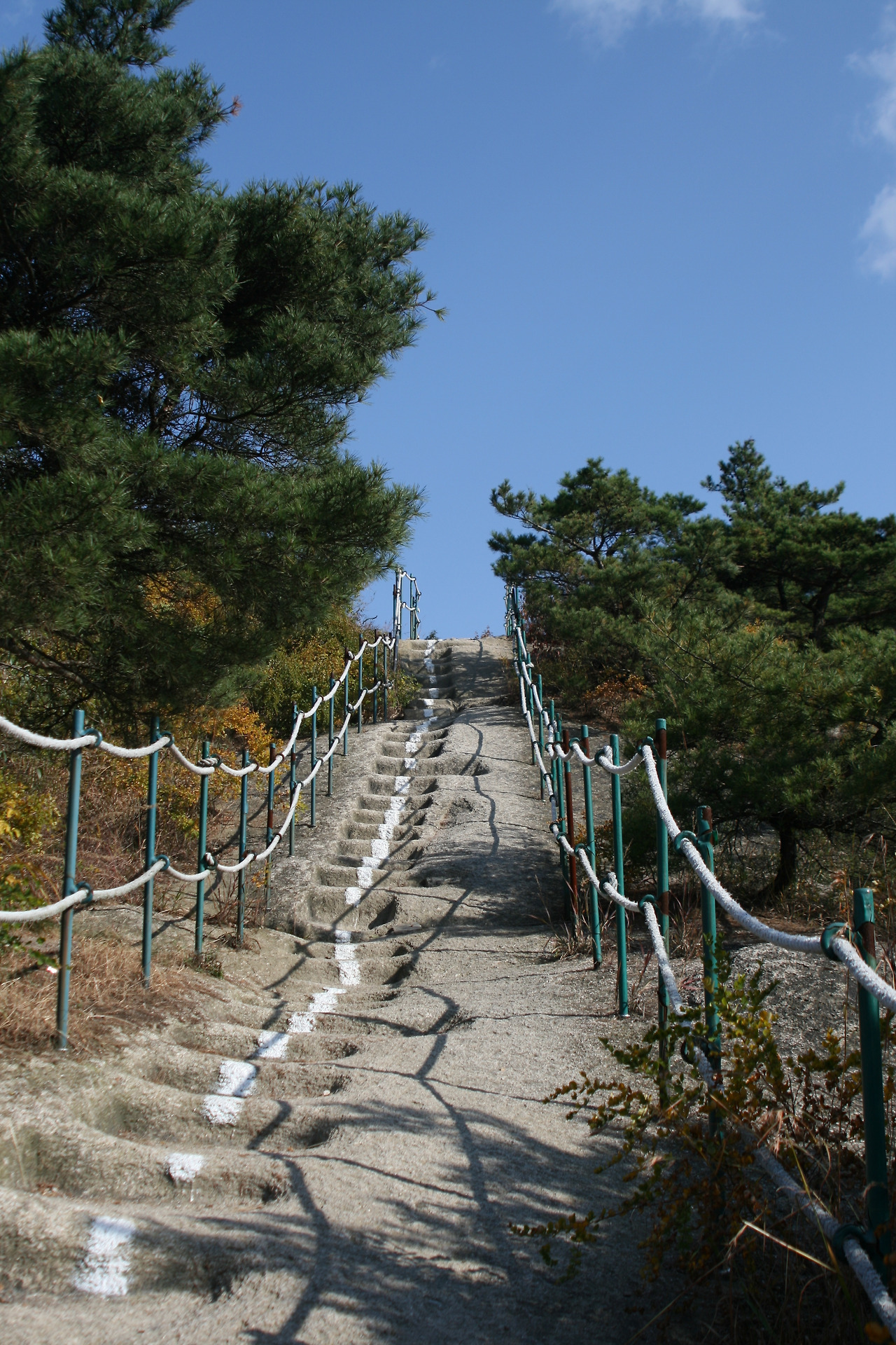 힘들게 오른 인왕산의 끝. 이 계단을 오르면 정상이다. 한번에 오를 수 있는 방법은 없다. 누구나 한발 한발 오르다 보면 정상에 서게 된다. 인생도 그와같다.
