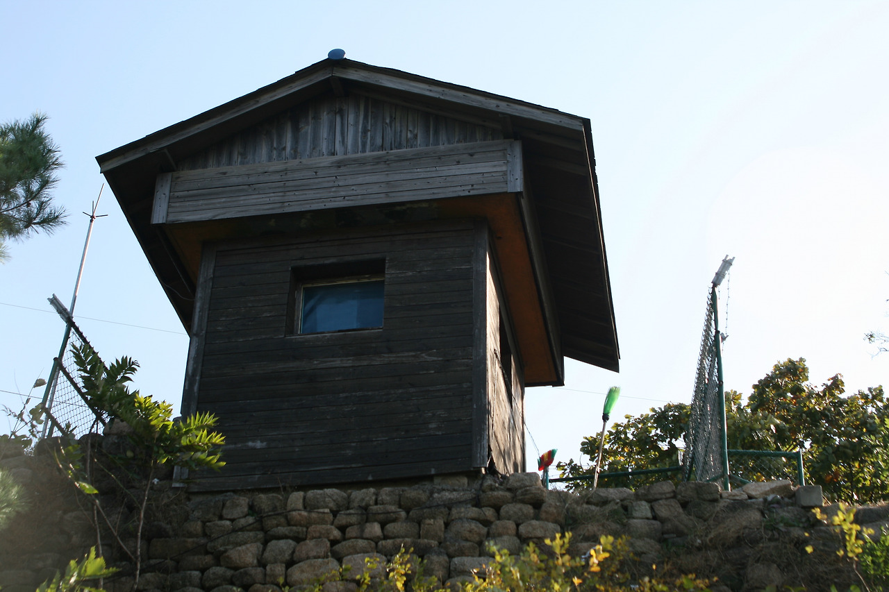 인왕산에 있는 초소. 철망으로 둘러쌓여 있다. 사람들의 마음을 쓸어담은 빗자루가 기다리고 있다.