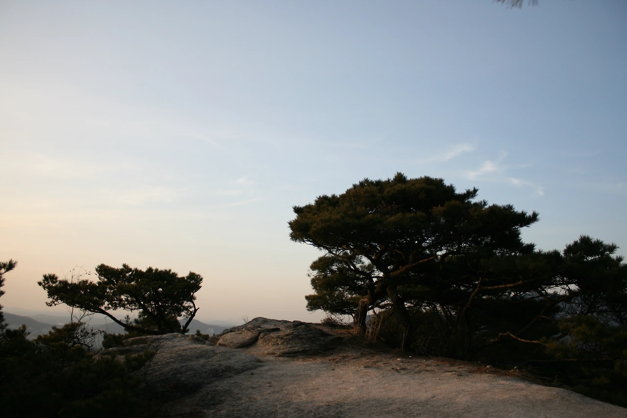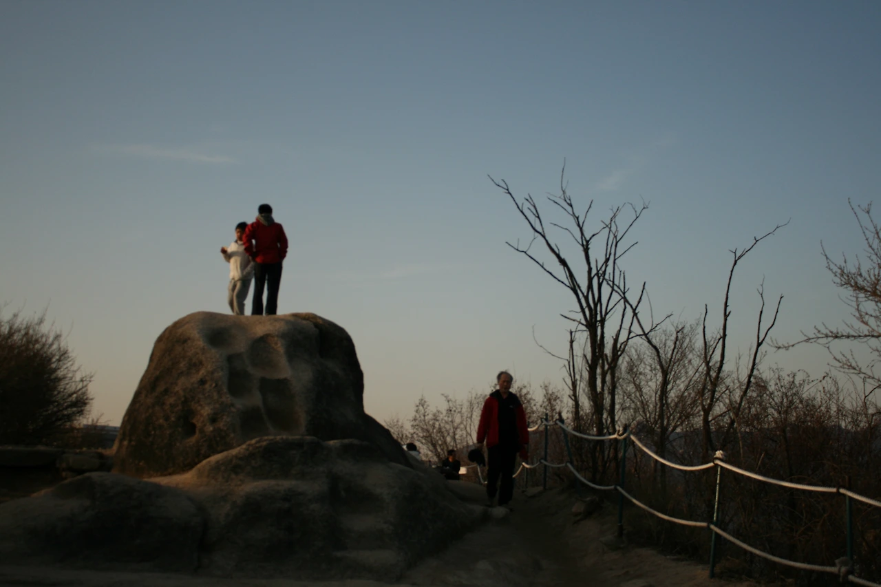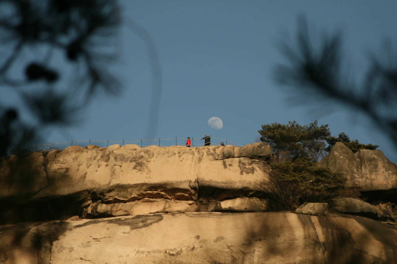 아들과 함께 낮달이 머무는 기차바위를 지나며