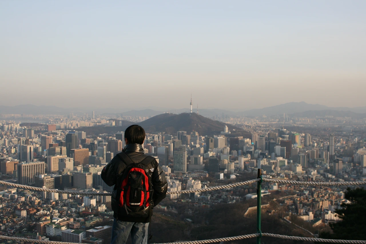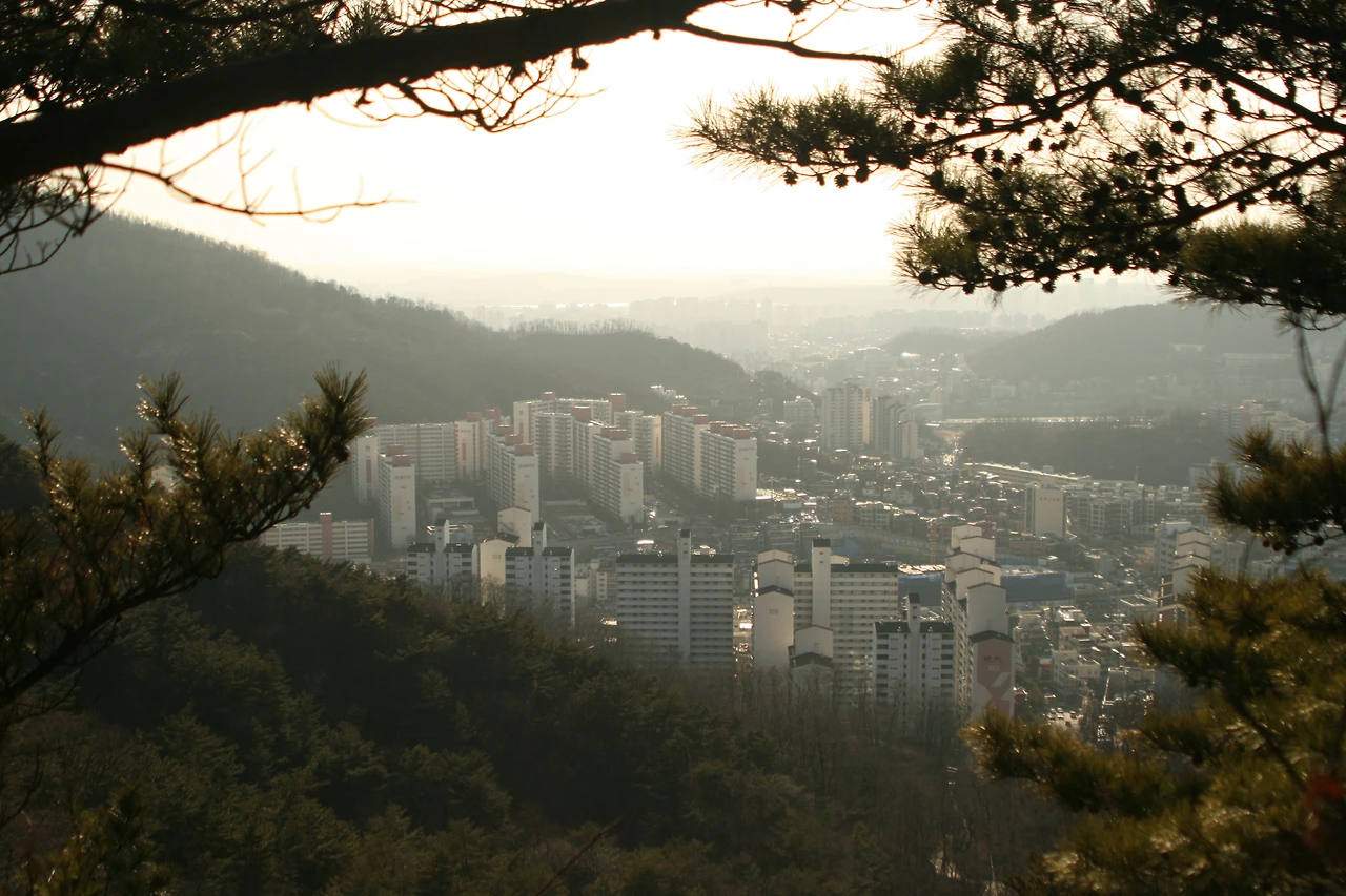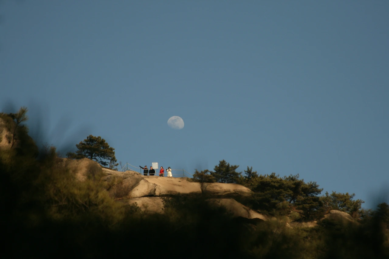 아들과 함께 낮달이 머무는 기차바위를 지나며