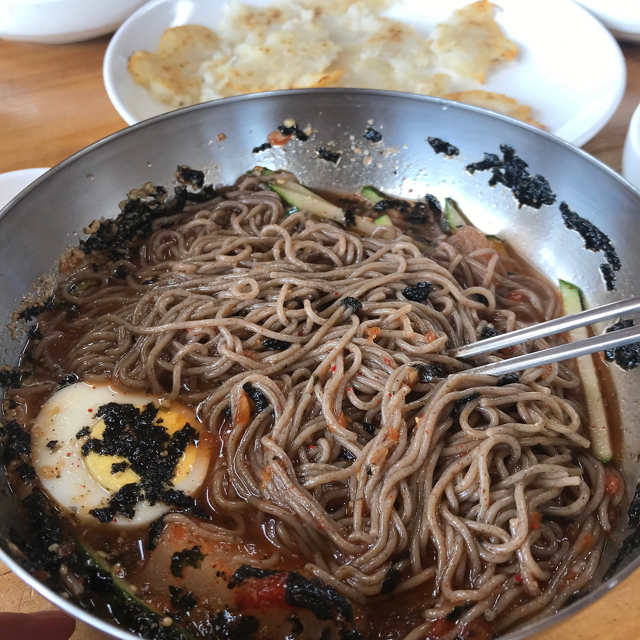 캠핑장을 정리하고 서울로 가기 전, 점심으로 양양에서 유명하다는 막국수를 먹었다. 막국수도 막국수지만 감자전이 일품이었다! 그리고 해가 반짝 뜬 맑은 날의 푸르른 바다도 눈에 담을 수 있었다.