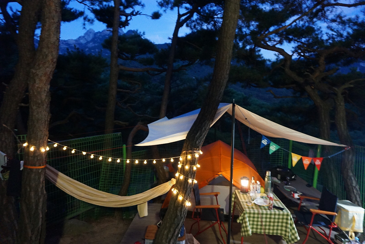 우리가 이번에 찾은 북한산 농바위 캠핑장은 북한산을 조망할 수 있는 곳에 위치한 캠핑장인데, 늦은 밤이라 북한산은커녕 깜깜해서 랜턴을 켜지 않으면 아무것도 보이지 않았다.