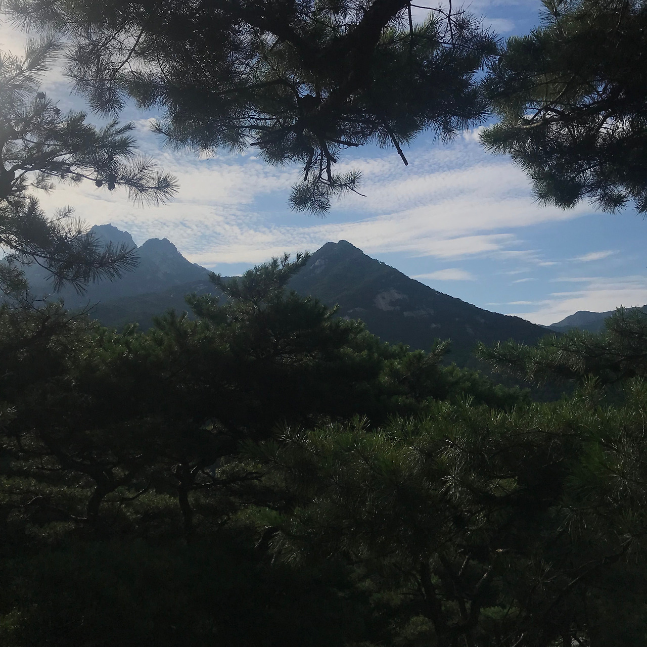 아침이 밝고, 닭소리인지 새소리인지 우렁차게 울어대는 주변 조류들의 모닝콜로 일어나 텐트 밖으로 나오니 사이트 뒤로 우뚝 솟은 북한산이 보였다. 날씨도 깨끗해서 경치는 듣던 대로 정말 좋았다!