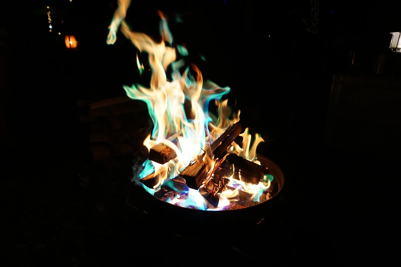 이 날 우리는 1박 치고 상당히 많은 양의 음식들을 챙겨간 덕분에 끊임없이 먹을 수 있었다. 둘이었다면 분명 귀찮아서 안 먹었을 텐데, 입이 네 개다 보니 부지런히 먹게 된다. 남편은 모닥불에 넣으면 불 색깔이 바뀐다는 요상한 물건(?)도 챙겨 왔다. 아마 지나가는 아이들이 있었다면 구경하러 놀러 왔을지도 모른다.