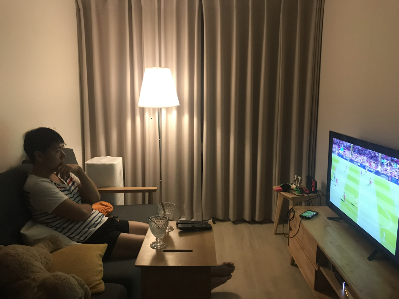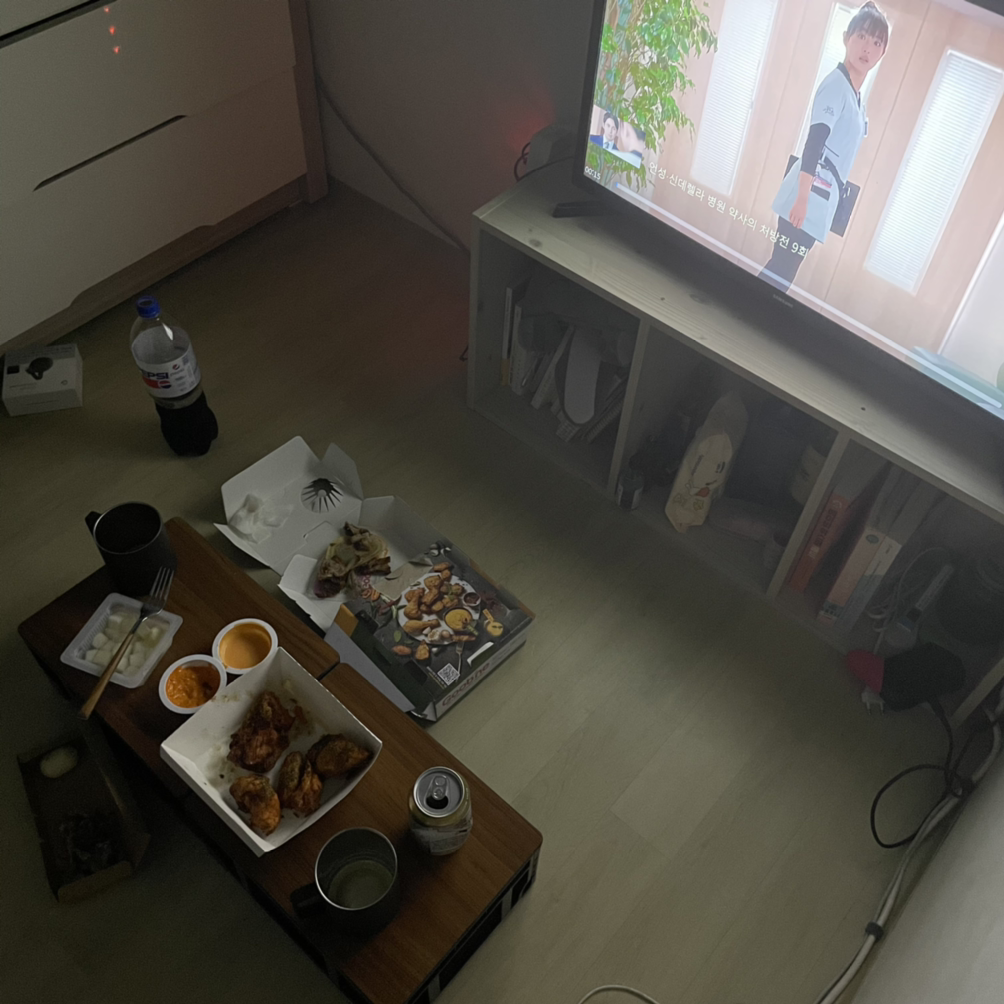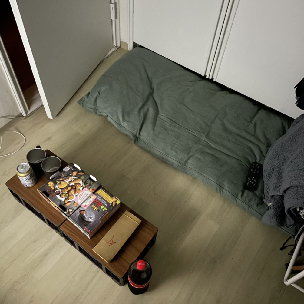 안 입는 옷들을 한가득 버리고, 방 한켠 사용하지 않는 컴퓨터 책상도 중고로 팔며 대대적인 공간 정리에 들어갔다. 그렇게 겨우 쥐어 짜내다시피 만들어낸 공간에 시댁에서 받아온 작은 티비를 하나 놨다. 좁아서 답답하지 않을까 싶던 예상과는 다르게 꽤 아늑하다.