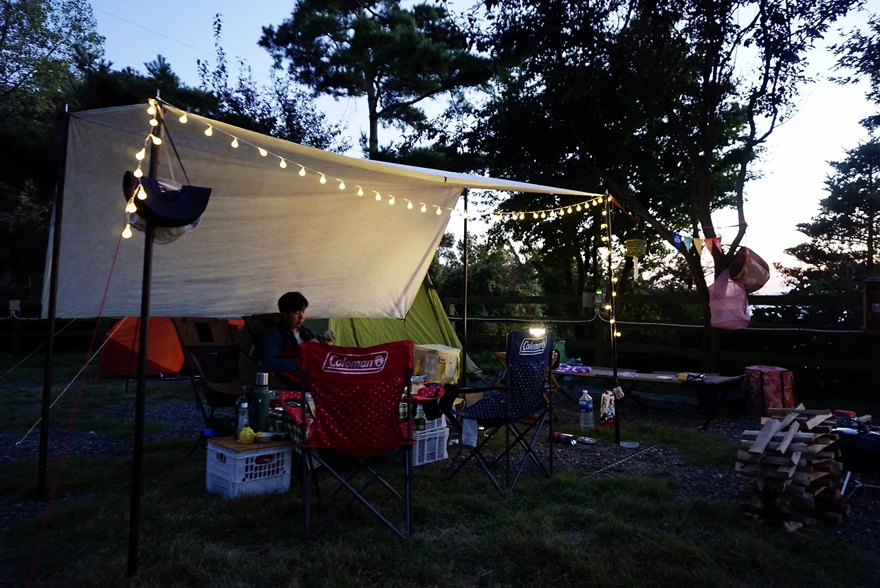 다행히 먹고 마시는 동안 아이는 한 번도 깨지 않아서 나름 편하게 시간을 보낼 수 있었다. 아이가 아침 일찍 일어날 게 분명하니 일찍 잠자리에 들기로 했다. 캠핑의 묘미는 밤인데, 긴 밤을 즐길 수 없는 게 아쉬웠다. 아이와 함께하는 캠핑은 현실과의 적당한 타협이 필요하다.
