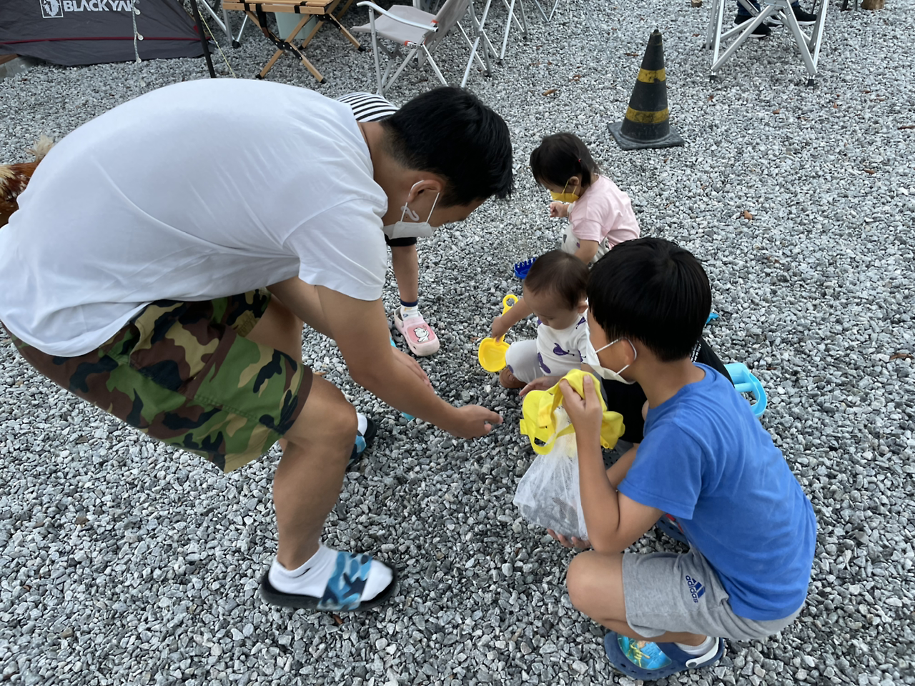 땡볕이 조금 가라앉은 오후가 되니 캠핑을 하러 온 아이들이 한데 모여 어울려 놀고 있었다. 다들 캠핑장에서 처음 만난 사이일 텐데 시원시원하게 통성명을 나누며 친밀하게 놀고 있는 광경이 신기했다. 심지어 아이들은 한없이 쬐깐한 우리 아이도 그 틈바구니에 끼워 넣어 데리고 놀아줬다. 이렇게 컨디션 좋게 잘 노는 거면 밤에도 문제없을 것 같았다.(희망고문)