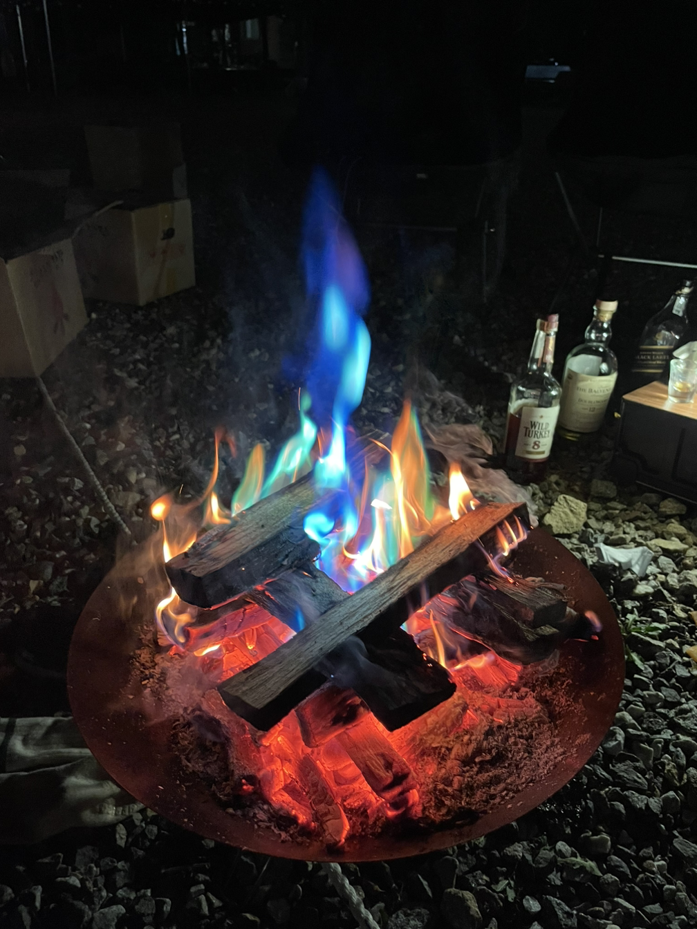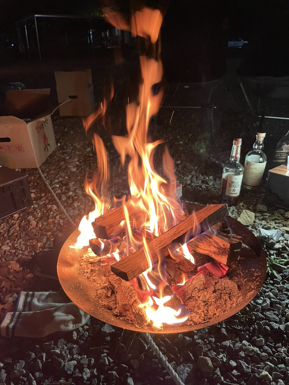 우리가 다녀온 이 캠핑장은 물고기 잡기, 공예 체험, 음식 만들기 등 아이들이 체험해볼 수 있는 프로그램이 다양해서 아이 동반 캠핑에 좋은 캠핑장이었다. 아직 어린 우리 아이는 참여가 어려울 것 같아서 따로 프로그램을 신청하지는 않았지만, 바닥에 떨어진 도토리를 줏으며 귀엽게 한참을 잘 놀았다. 친구의 아이들은 좀 컸다고 엄마 아빠 없이도 알아서 잘 놀다 보니 잉여 인력(?)이 많아서 모처럼 고기도 구워 먹을 수 있었다. 또, 친구가 뽁뽁이에 싸서 정성스레 가져온 각종 위스키들로 재미난 밤을 보냈다.