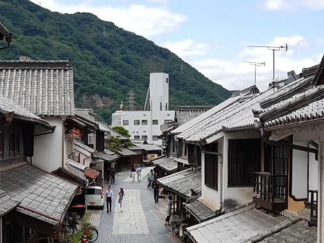 이 곳, 전통 보존지구는 일본의 옛 가옥들, 신사, 절, 상가 거리가 그대로 보존되고 있다. 골목이 잘 보이는 2층 집에 올라 창 밖을 내다보니 거리가 한눈에 들어왔다. 메이지 시대 역사 속으로 걸어 들어간 느낌이다. 실내에 애니메이션 주인공들이 전시되어 있고, 책과 만화들이 스토리텔링을 엮어낸다. 대나무로 장식된 벽면이 독특하다. 대나무의 동네이다 보니 곳곳에 대나무 장식이 달려있고, 대나무통을 뚫어 빛이 반사되는 조명, 대나무 꽃꽂이 등 소박하지만 재미있는 상품들이 가득하다. 소쇄원 등 대나무로 유명한 담양군과 자매결연을 맺고 있다.
