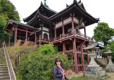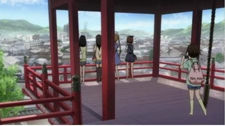 서방사 관음전을 배경으로 한 친구들 촬영-타마유라 장면