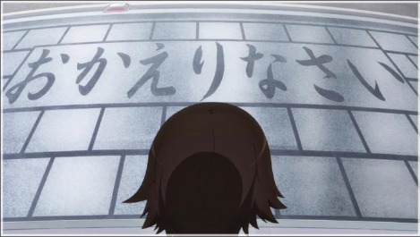잘 돌아왔어요 라는 글귀 앞에 선 타마유라 장면