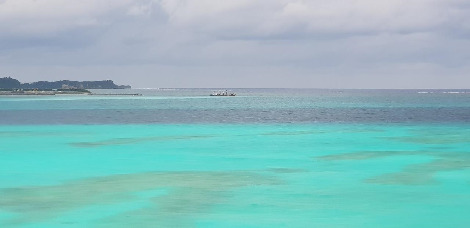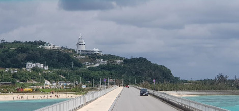 오키나와 섬 북부 코우리 섬으로 들어가는 대교 양 옆으로 바다색이 예쁘다. 오르막 내리막의 언덕이 있는 약 2Km의 코우리 대교 양쪽 에메랄드빛 바다가 청정하다. 코우리 섬은 태풍도 무서워하지 않고 물고기를 잡아 올리는 어부들로 알려져 있다. 그물을 바다 밑바닥으로 끌어내린 후 다이버들이 들어가서 바위 속에 숨어 있는 물고기들을 그물 안으로 모는 방식으로 잡는다. 싱싱한 해물 요리와 새우요리가 유명하다고 했다. 아이스크림 먹는 걸로 대신했다.