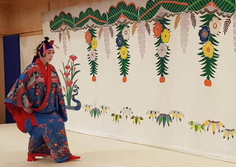 간결한 정원을 둘러보고 내려오는데 공연장에 사람들이 있다. 한 배우가 짙은 화장을 하고 혼자서 무대를 채우고 공연을 진행하고 있다. 구미 오도리, 오키나와의 공연예술이다. 음악과 춤을 바탕으로 중국의 요소들까지 통합한 전통공연, 역사적 사건이나 전설을 독특한 리듬과 오키나와의 옛 언어로 보여준다. 몸놀림은 고대 전통 의례를 진행하던 무녀들의 동작을 연상시키고 배역은 남성 배우들만이 맡는다. 그날 공연은 집 떠난 가족의 무사 안전을 달님에게 비는 내용인 듯하였다.