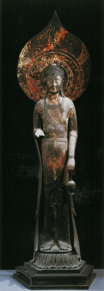 백제관음상은 제27대 백제 위덕왕이 구세관음상과 함께 백제에서 제작, 일본으로 보낸 높이 2.8m의 목조 입상이다. 이 백제관음상은 방충제의 원료가 되며 좀이 잘 슬지 않는 녹나무로 만들어져 현재까지 원형이 잘 보존되고 있다. 수려한 미소와 섬세한 옷 주름, 우아한 자태로 인하여 호류사뿐 아니라 일본 고대 유물 중에서도 손꼽히는 걸작이다. 이 아름다운 불상은 아스카 문화 형성에 미친 백제의 영향을 잘 보여주는 대표적인 유물로 백제와 일본의 교류를 확인하는 가치가 있는 작품이다.