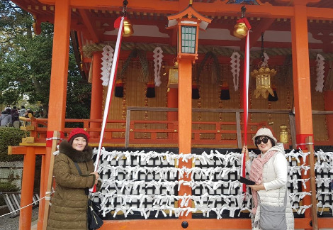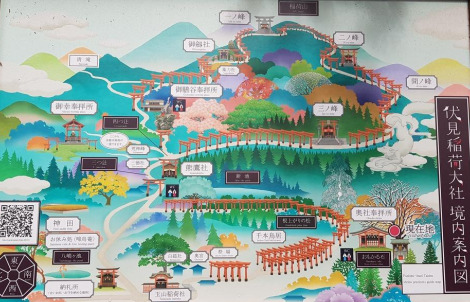 일본 각지 3만 개의 이나리신사 총 본궁으로 711년에 창건된 교토의 후시미이나리 신사. 장사 번창을 바라는 이들의 기도와 감사의 뜻으로 봉납한 약 1만 개의 토리이가 있다. 풍요의 신, 안전과 연예 성사 등 서민 중심 신앙이 발전해 온 곳이다. 해발 233m에 있는 이치노봉우리를 비롯해 사당, 본사, 부속 신사를 돌아보는 "오야마 순례"는 약 4km에 이른다. 붉은 열주들이 연속된 길을 따라 쭉 올라가는데 여전히 사람들이 많았다. 연초 복을 빌러 오는 사람들을 보며, 한 바퀴 돌아 내려오니 뿌듯했다.