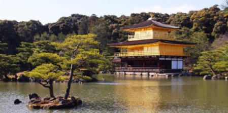 일본에서는 794년, 교토로 천도하여 헤이안 시대를 열었다. 400여 년 동안 '가나' 문자와 '와카' 음악 등 일본 고유문화가 발달했다. 12세기 천황의 공인을 받은 쇼군을 중심으로 무사들이 권력을 잡는 가마쿠라 막부시대가 열렸다. 1467년 경 오다 노부나가에 이어 약 100년 동안 다이묘들이 군웅 할거하는 혼란의 전국시대가 이어졌다. 의리·충성·용맹이라는 이상과 무예를 가장 존중하는 사무라이 계급의 등장은 할복자살과 검에 대한 숭배로 나타났다. 다도와 꽃꽂이, 수묵화 전성기를 이루고, 쇼군의 별장으로 교토에 금각사, 은각사가 세워진다. 두 개의 층에 금박이 붙여진 선종사찰 금각사는 교토의 대표 문화재이다. 또한 쇼군과 사무라이들이 누렸던 권력의 유산이다. 음~ 호수에 비친 금각사의 모습은 단아하면서도 호방하다. 무사 계급의 권력, 주변국의 영향, 선종추구의 문화가 금각사에서 절제된 화려함으로 보인다. 해질 무렵 다시 와야겠다.