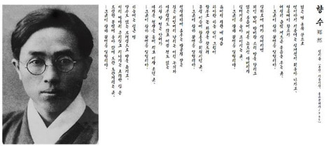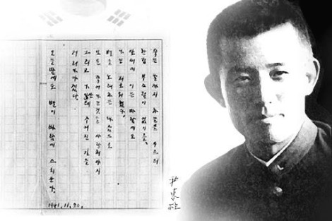 윤동주 시인의 사진과 '서시'가 담긴 원고지