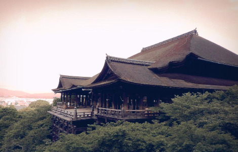 삼층탑과 서문 사이에 사람들이 몰려들어 교토의 전경을 눈에 담고 있다. 교토의 시가지는 차분히 정리된 브라운카페 같다. 둥근 첨탑 교토 타워에 눈이 머문다. 이에 대비되는 삼층탑과 종루의 붉은빛은 오후의 햇빛을 받아 더욱 화려하다. 시시각각 빛에 따라 달라지는 색상을 고려한 건물들임에 틀림없다. 해가 저물자 붉은빛은 차분해지고, 점차 녹색빛을 띠는 신기한 경험을 했다.