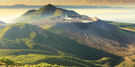 구마모토로 이동하여 동부에 위치한 활화산 아소산을 찾아갔다. 이중 활화산으로 세계 최대급의 칼데라와 외륜산을 가졌다. 아소화산은 구마모토현의 상징적인 존재이다. 화산 활동이 평온한 시기에는 화구에 가까이 가서 견학할 수 있지만, 활동이 활발하거나 유독 가스가 발생할 경우는 화구 부근의 진입이 규제된다. 가까이 다가가니 목이 매케하고, 눈이 따가웠다. 바닷가에 이중화산 구조로 형성된 곳은 우리나라의 울릉도가 있다. 나리와 알봉 두 분지가 정상에서 고위평탄면을 이루어 약초 재배하는 집들이 있었다. 다설지역에 만들어진 우데기를 보러 올라가 농가에서 삶은 감자를 얻어먹은 기억이 났다.