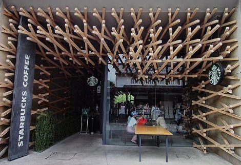 구마겐코가 설계 한 나무질감의 다자이후 스타벅스