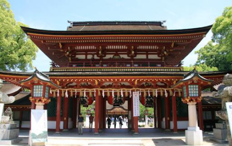 붉은 기둥의 2층 누문을 지나, 스가와라노를 모신 본전이 안쪽에 자리 잡고 있다. 한반도에서 건너간 도래인들의 기술로 지었으나 현재의 본전은 1591년 세워졌으며, 일본의 중요문화재로 지정되었다. 스가와라노를 모신 신사로서 매년 입시철이 되면 합격을 기원하거나 취업을 바라는 참배객들의 발걸음이 끊이지 않는다.