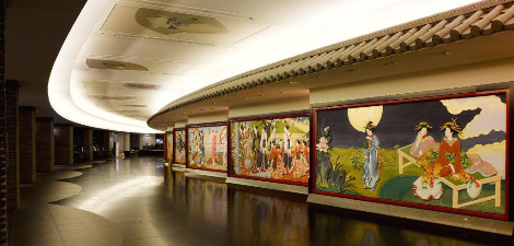 옻칠로 보존되고 있는 1층 로비의 목판화