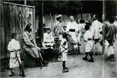아이들도 봉을 들고 무장한 재향군인회와 자경단