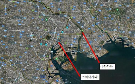 도쿄 시가지를 흐르는 스미다강과 아라 강