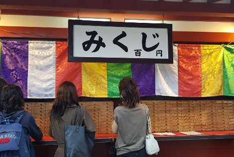 센소지의 역사는 628년 어부 형제가 스미다강에서 그물에 걸린 목조불상을 발견하면서 시작되었다. 불상을 관세음보살로 정하고, 집을 절로 개조하여 공양하게 되었다. 이후 645년에 쇼 카이 쇼닝이 관음당을 건립하자 작은 어촌이었던 이곳이 서서히 활기를 띠게 되었다. 센소지는 현재 연간 3,000만 명이 찾는 명소이다. 근처 스카이트리가 세워지면서 사람들이 더 많이 몰려들었다. 센소지에서 독특한 추억은 오미쿠지, 신사나 절에서 운세 제비뽑기 하는 것이다. 옛날부터 나라의 중요한 일에 대해 신의 뜻을 묻는 제비뽑기를 했다고 하는데 이것이 오미쿠지의 기원. 100엔을 넣고 오미쿠지 운세를 봤더니 조심하고 경계하라는 문구가 있었다. 다 좋은 문구만 있는 것이 아니었다.
