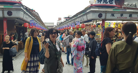 아사쿠사는 현대적인 높은 빌딩들 가운데 전통적인 에도 시대의 거리를 만날 수 있는 곳이다. 옛 도쿄의 풍경과 분위기를 간직하고 있는 유서 깊은 나카미세 거리에는 전통적인 공예품점이 길게 이어져 있다. 각국에서 몰려드는 엄청난 인파들로 발 디딜 틈이 없었다. 일본 특유의 기념품, 전통 부채, 가면과 목각인형 등을 구입할 수 있다. 기모노처럼 포장한 손수건 하나 장만! 7월에는 강변에서 축제와 불꽃놀이가 열리는 곳이다.