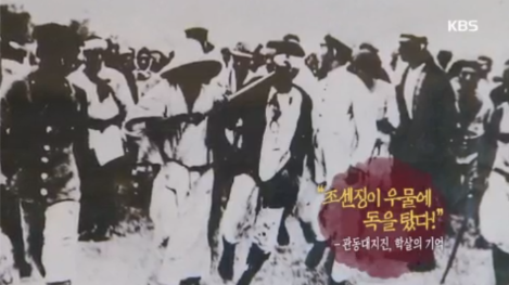 1923년 9월 1일, 도쿄와 요코하마를 중심으로 한 일본 간토 지방에 진도 7.9의 대지진이 세 번이나 발생했다. 이에 대규모의 화재와 해일, 토네이도로 인해 도쿄와 요코하마가 파괴되고, 정부조직이 마비되었다. 흉흉해진 민심을 잡기 위해 조선인이 우물에 독약을 집어넣었다는 유언비어를 유포시키고 이것을 구실로 계엄령을 선포했다. 진위를 가리지 않고 조선인들에게 적개심을 유발했고, 조선인의 복장을 한 이들을 죽였다. 또한 일본인과 구별하기 위해 十五円五十銭( '쥬고엔 고주센')이라는 발음을 시켜 어눌하면 죽이는 광기의 시기였다. 전국에 조직된 자경단에 의해 학살된 조선인들만 6,000명이 넘은 것으로 추정되었다. 도쿄를 흐르는 강은 피로 물들여졌으나, 일본 정부는 기소된 사람들은 증거 불충분으로 무죄방면 했다. 학살 사건에 사법적/ 도덕적 책임도 지지 않고 기록을 축소해 200여 명 사망으로 공식화했다.