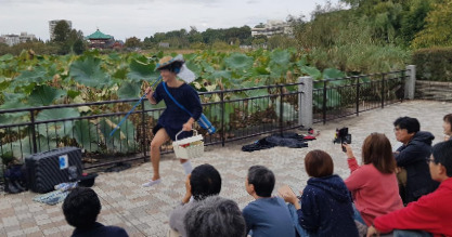 시노바즈 연꽃 공원 앞 팬터마임 공연