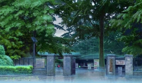 신주쿠 공원 정문과 똑같은 애니메이션 장면