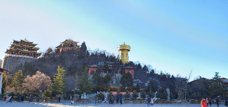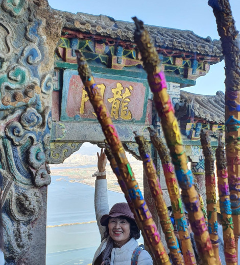 그리고 서산으로 올라가려고 안쪽으로 들어가니 돌로 된 청색 기와 아래 공포 장치까지 달린 패문이 서있고, 어디서나 만날 수 있는 8가지 글자들이 깃발에 붉게 새겨져 있다. 중국인들에게 정신적 가치와 사상을 추구하는 것이 이방인의 눈에는 정치적 가치를 추구하는 글귀로 보였다.