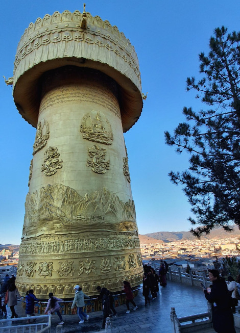 우리네 역사와 닮은 듯 다른 티베트의 역사를 돌아보며 역시 높은 계단을 낑낑대며 올라갔다. 황금 대형 마니차를 찾아갔는데 20여 명의 사람들이 모여서 함께 돌리고 있었다. 힘을 합쳐 밀어보니 거대한 마니차가 빙글빙글 돌아갔다. 마니차는 불교 경전이 적혀있는 원통으로 티베트에서는 마니차를 한 바퀴 돌리면 불경을 한번 읽은 것으로 인정하고 있다.