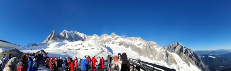 아직 하늘이 깜깜한 시간이었지만 시간을 아끼기 위해 일찍 옥룡설산으로 출발했다. 옥빛 용을 머금은 거대한 설산인 옥룡설산은 마치 은색의 용이 춤을 추는 모습과 비슷하다 하여 '옥룡'이라는 이름이 붙여졌다. 이름 그대로 1년 내내 눈이 녹지 않는다 하여 설산이다. 여강 서북구 20km 떨어진 곳에 웅장하게 서 있는데, 시내에서 옥룡설산의 주봉을 볼 수 있다. 중국의 명산으로 새해의 우렁찬 기운을 받기 위하여 많은 사람들이 찾아오는 곳이다.