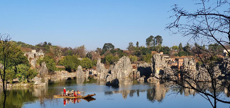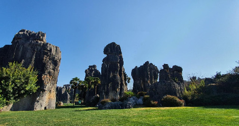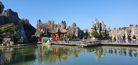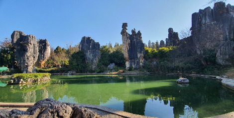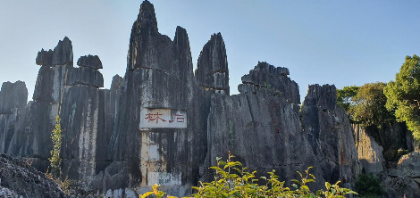 둘째 날, 아침 일찍 출발한 버스는 두 시간 정도 달려 세계 자연유산 석림에 도착했다. 석림은 2억 7000만 년 전 바닷속의 바위들이 지상으로 융기되면서 형성된 세계 최대의 카르스트 지형이다. 돌기둥이 마치 나무 기둥처럼 솟아올라 숲 속의 나무처럼 생겨서 돌의 숲, 석림이라 이름 지어졌다. 이번 곤명 여행 목적 중의 하나가 석림을 직접 보기 위해서였다. 한때, 지형학을 공부하면서 얼마나 거대한 곳이길래 숲을 이루었을까? 보고 싶었던 곳, 기대가 큰 곳이었다. 사람들이 몰려오기 전, 9시에 바로 입장하려고 서둘렀는데 입구에 벌써 사람들이 기다리고 있었다.