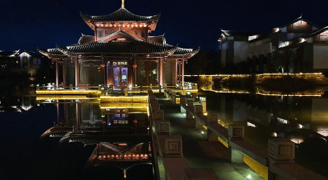 리장 하얏트호텔에 짐을 풀고 나가보니 어둠 속에서 호텔 모습이 아름답다.리장 고유의 전통 장식과 현대적이고 럭셔리한 시설이 조화를 이루고 있는 호텔로 야경이 기가 막혔다. 연회장이 수면에 비친 모습을 보고 반영을 찍었는데 근사했다. 다음날 조식도 아주 훌륭하게 잘 나왔다.