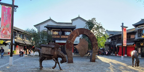 다음날, 아침 일찍 남쪽으로 8km 떨어진 윈난 민족촌을 찾아갔다. 윈난 소수민족들을 만날 수 있는 곳이었다. 윈난 성에 살고 있는 바이족, 나시족, 장족, 이족, 라후족, 모소족, 타이족 등 26개 소수 민족의 정취와 고유의 생활모습을 직접 체험할 수 있는 곳이다. 넓은 호수와 저 너머에 서산이 살짝 보이고, 키 큰 나무들이 독특한 건축물들과 어우러져 있었다. 상가가 늘어선 거리에서 소수 민족 사람들이 의례적인 무대공연을 하고 있었다. 독특한 옷차림과 행동으로 소수민족들의 춤을 보여주고 있었다. 해드 뱅뱅과 원초적이고 다양한 춤사위를 바라보니 문득 k-pop을 주도하는 아이돌 춤의 아이디어를 여기서 배울 수 있겠다는 생각이 들었다. 공연을 관람한 후 목조 5층 탑을 따라 안으로 들어갔다. 차마고도에서 티베트까지 이정표와 차를 실는 말의 조각상을 지나면, 노란색 글씨가 새겨진 박물관 입구가 나온다. 안으로 들어가면 10여 개의 마을로 구분되어 각 민족 고유의 생활과 문화를 재현하고 있다. 소수민족들이 전통의상을 입고 순박한 미소로 맞이하고 있었다.